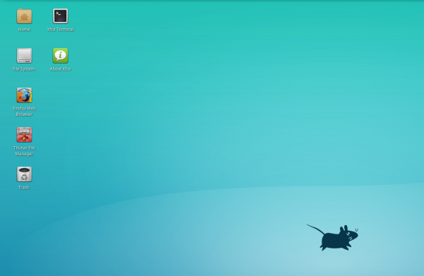 xfdesktop offers right and middle-clicking menu options; right-clicking on the desktop opens up a menu with shortcuts to different actions. Examples of these include opening up a file manager or terminal window in the ~/Desktop directory, creating launchers, URL links, folders and files from templates and offering clipboard actions. You can also open the Desktop settings and access the desktop properties from this menu, as well as providing a shortcut to arrange the desktop icons.